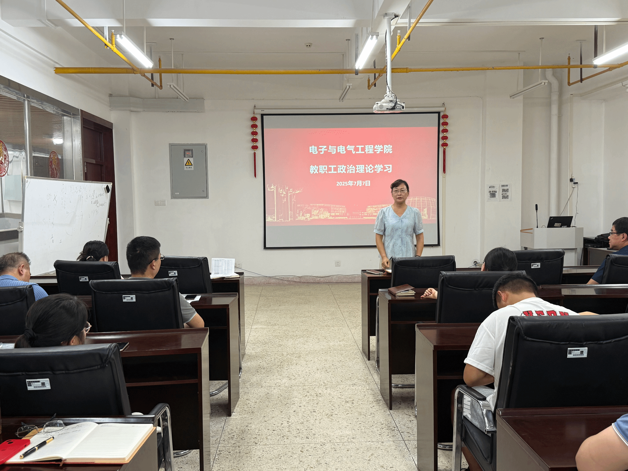 为深入学习贯彻习近平新时代中国特色社会主义思想,大力弘扬大别山精神、抗洪精神、抗疫精神,广泛践行社会主义核心价值观,7月7日下午,雷火竞技平台在崇真楼南楼A6013会议室组织全体教职工开展理论学习活动。本次会议由学院党委书记张红鑫主持,全体教职工参加,旨在引导教职工深刻领会这些伟大精神的内涵,并将其融入日常教育教学工作中。