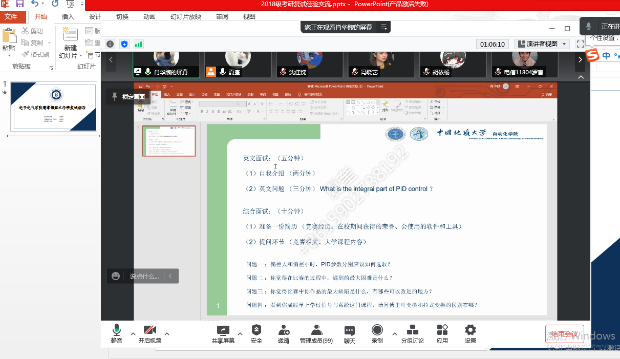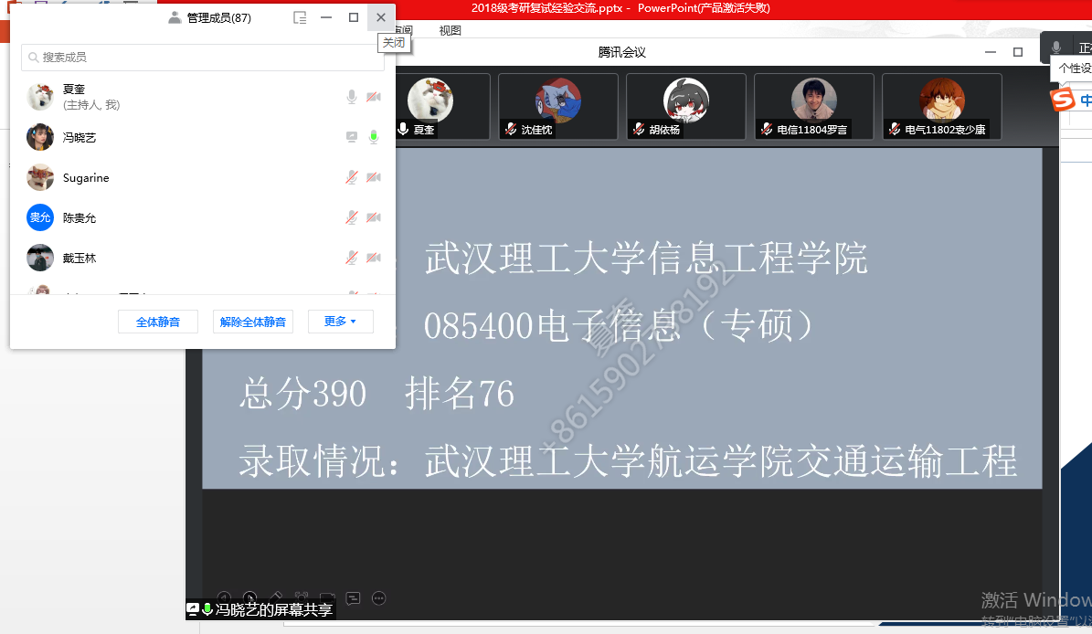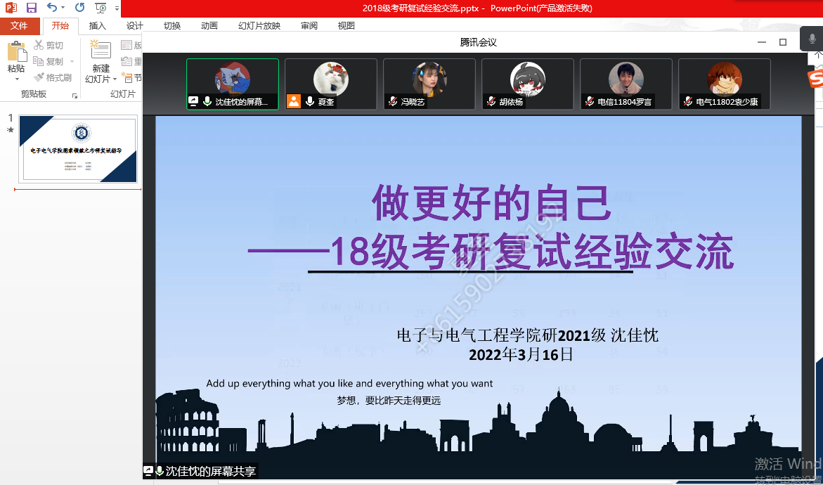 为了帮助考研的同学更加详细地了解考研复试的相关事宜和注意事项,助力学生成长成才。3月16日上午,雷火竞技平台举办了线上考研复试交流会,来自我们2017级学生代表、中国地质大学研究生肖华煦,武汉理工大学研究生冯晓艺以及本校研究生沈佳忱做朋辈领航,分享交流考研复试经验,会议由毕业班年级辅导员夏奎主持,2018级全体考研学生参加了会议。