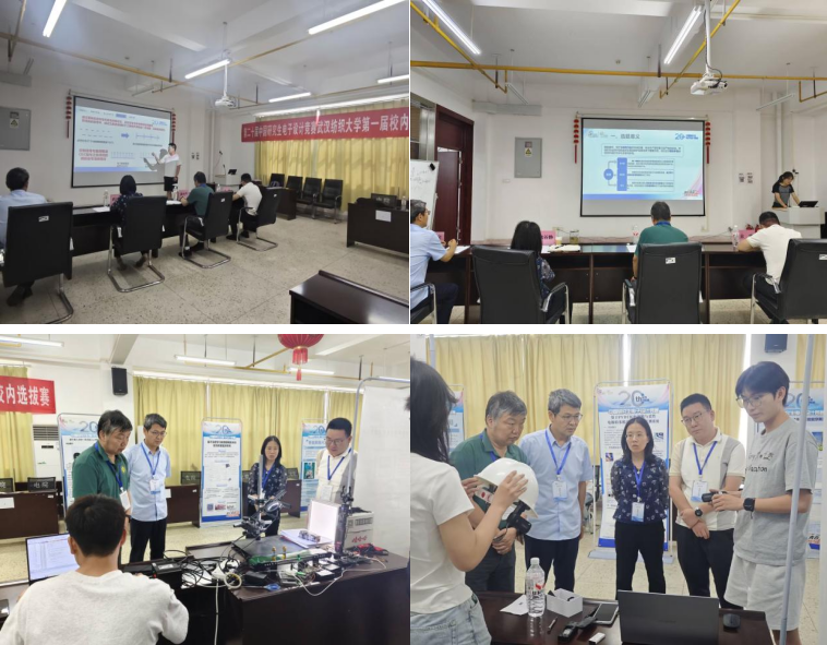 本次校内选拔赛选题涵盖了电路与嵌入式系统、机电控制与智能制造、信息感知系统与应用、信号和信息处理技术与系统、人工智能等多个前沿领域。各参赛队伍精心备赛,从参赛作品的技术细节、创新价值和应用前景等方面进行了演示与讲解,并接受评委老师的专业提问与点评。在复赛答辩现场,参赛选手们以扎实的研究成果展开激烈角逐,每一组队伍都系统呈现了参赛作品的技术原理、实验数据与应用前景,从容应对专家评委们关于核心技术突破、市场应用潜力及商业可行性的深度提问。
