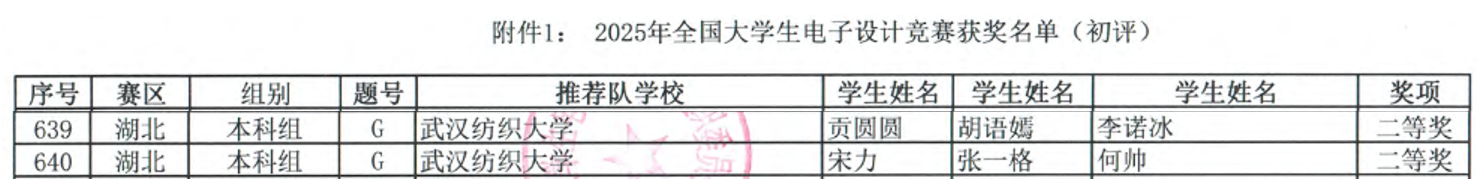 近日,由教育部高等教育司、工业和信息化部人事教育司主办,全国大学生电子设计竞赛组委会承办的2025年全国大学生电子设计竞赛(TI杯)获奖名单正式揭晓。由我校雷火竞技平台田裕康、郭旻老师指导的宋力、何帅、张一格和贡圆圆 、胡语嫣 、李诺冰两个队伍获国家二等奖。