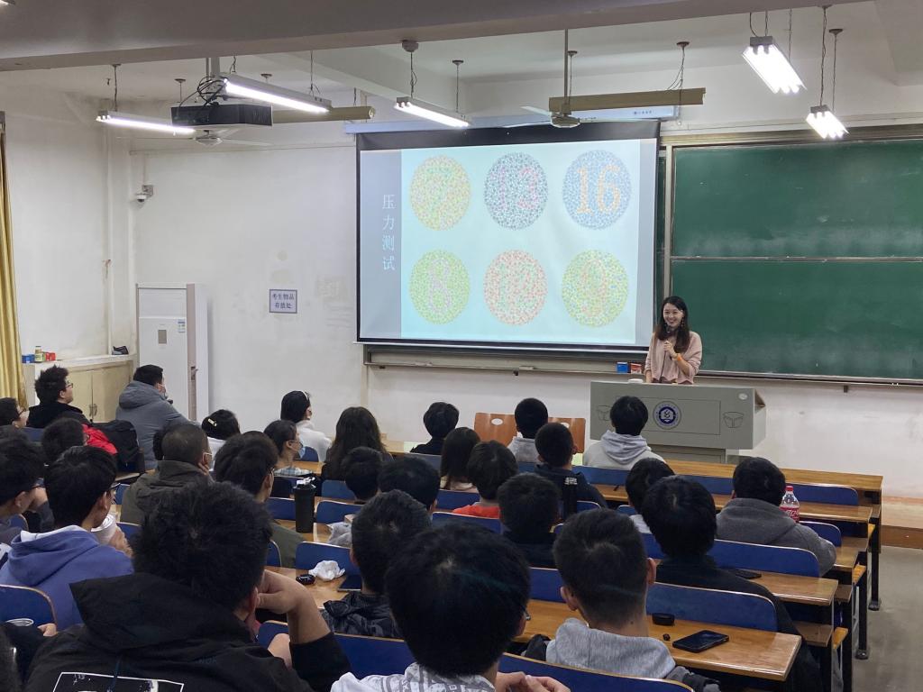 梁老师从大学生心理压力的来源展开,从理想性与现实性的矛盾等方面全面分析了大学生的压力,利用自身多年的实践经验,向同学们分享减压和心理调适的具体技巧和方法,倡导大家正确处理学习与生活中的矛盾,以积极向上的心态面对学习、以乐观豁达的心态投入生活。在活动的间隙,设置了开心的互动环节,同学们都积极参与到活动的中,整个教室洋溢着欢乐的氛围。借此,同学们既放松了心情,又对本次活动的主题有了更深刻的理解。