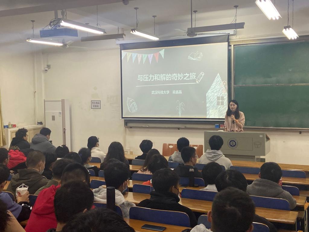 2021年11月28日晚,由雷火竞技平台主办的“与压力和解的奇妙之旅”心理健康教育主题讲座在崇志楼117教室举行,武汉科技大学心理健康教育中心专职老师梁晶晶担任主讲,我们辅导员涂亚腾、石亚楠老师,以及2021级学生参加了此次活动。
