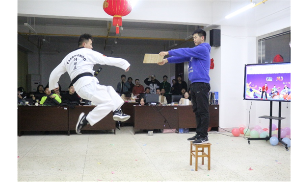 晚会在王煜明同学的歌唱节目《孤勇者》中拉开帷幕;陈祎明、柏嘉庚两位同学带来了吉他弹唱节目《晴天》,两位同学配合默契,弹者熟练、唱者深情;朱登玉同学的跆拳道节目《跆风》展现了我们研究生坚毅向上的精神风貌,将晚会拉向了高潮,引得同学们纷纷上台尝试跆拳道招式;而后廉祥同学、郑卓同学、鲍麒同学分别进行了歌曲类节目,台下观众陶醉其中,纷纷挥舞着手里的荧光棒,汇聚成星海。