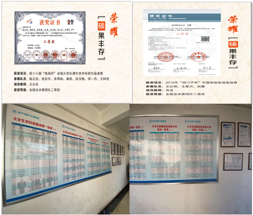 学院坚持以立德树人为根本任务,树立正确的教育科研观,近年来累计获得多项国家级和省级竞赛奖项,此次科技竞赛长廊以“发挥专业特长、挖掘学生潜能、汲取文化营养、展现青春风采”为工作导向,从大学生学科竞赛成果、大学生创新创业训练计划项目等方面展示师生科创成果,营造科技学术氛围,推动科技文化建设。科技竞赛长廊展示了我们师生近年来的科创成果,使科技创新更好地服务于学院建设发展,同时也极大地鼓励了学生积极投身于科技创新实践,挖掘自身创新潜能,在珍惜韶华、潜心钻研中成为德智体美劳全面发展的技术技能创新型人才。