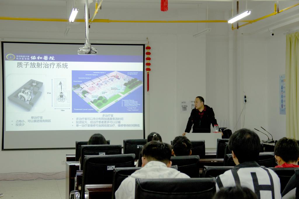 癌症(恶性肿瘤)是严重威胁人类健康的重大疾病之一,也是我国导致死亡人数最多的疾病。如何有效攻克恶性肿瘤一直是全世界临床医学人员及科学家们聚焦的研究热点和难点。华中科技大学附属协和医院肿瘤中心杨晶博士为在座的老师和同学们详细讲述了“肿瘤放射治疗技术及质子放射治疗系统”。我们部分教师、研究生、本科生参加了讲座。