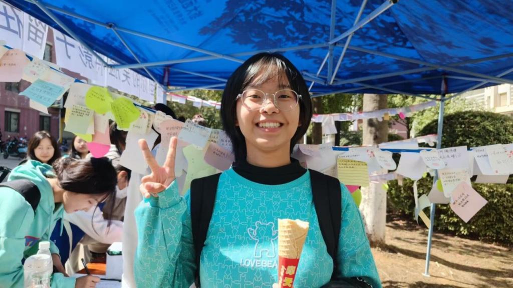 上午9点,两项特色活动正式开始。一是“树洞信箱”心情寄存点,活动准备了树洞信箱以及精美信封,让参加的同学们将自己最近的烦心事或者遇到的困难写在信封里,并在活动结束之前投入信箱,后期会有工作人员给同学们回信。二是分享生活中的小确幸,参与的同学们会在便利贴上写下最近开心的事情并将其贴在帐篷周围的红丝带上,将快乐的事情传播给其他同学。活动期间,现场气氛活跃,同学们积极参与,写下了自己的开心事或者烦心事。10月11日下午2点,活动圆满结束。