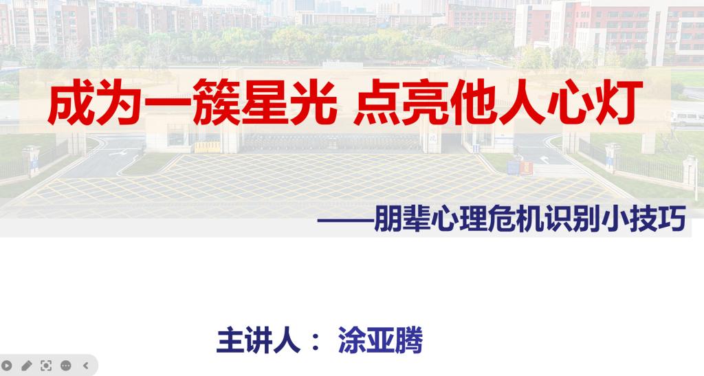 为进一步提高心理委员业务能力,提升学院心理健康教育管理工作水平,11月26日,雷火竞技平台线上开展了以“如何发现并及时处理心理危机”为主题的心理委员培训会。本次培训会由涂亚腾老师主讲,学院全体心理委员参加培训。
