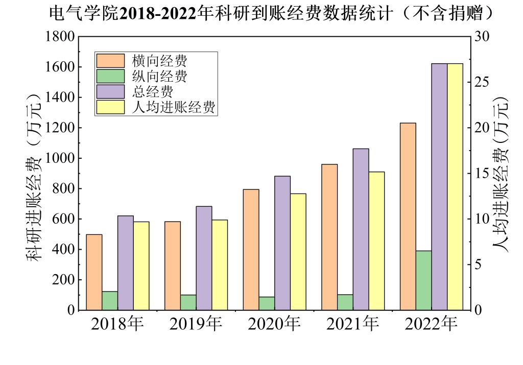 学院到账科研经费共计1923.66万元(横向经费1231.2万元,纵向经费390.46万元,捐赠经费302万元);人均经费32万元(不含捐赠为人均经费27万元),科研横纵向经费均创历史新高。