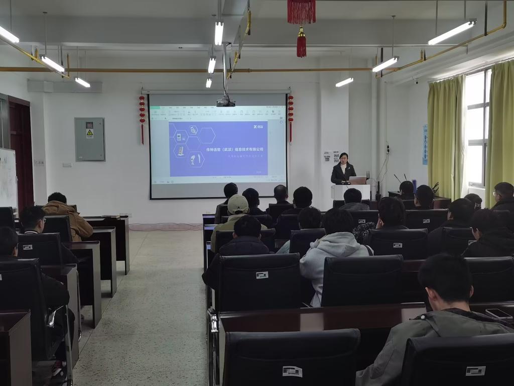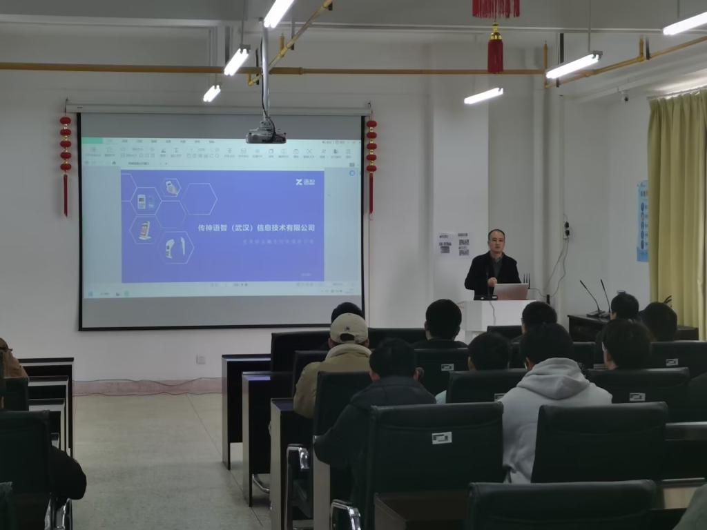 李晖校友表示,很高光受邀回到母校与学弟学妹分享就业经验和创业历程。他结合自身经历,从学习、工作、生活等方面与同学们进行了亲切交流,提醒同学们要树立合理目标、掌握必要的知识与技能,在未来的实践与工作中善于发现并把握机遇,走出自己的舒适区。在谈到自己创业经历时,他说“创业要想成功就必须经受别人不能经受的磨难,承受别人不能承受的艰辛。”他鼓励学弟学妹们要多体验生活,珍惜时光、不负青春;找准自身定位,向着目标前进,成就出彩人生。传神语智(武汉)信息技术有限公司人事经理补充介绍了公司目前状况和校招需求,现场接受同学们投递简历,并解答了同学们的疑问。