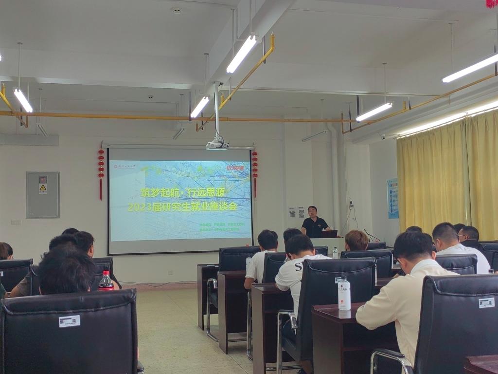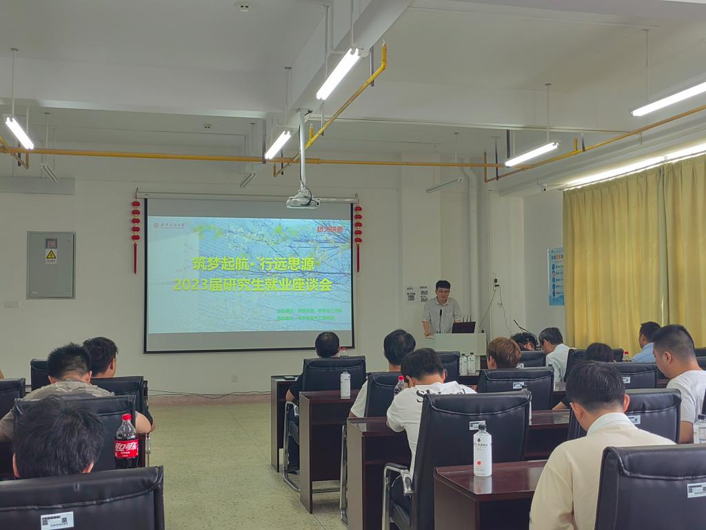 为进一步为引导研究生充分认识当前的就业形势,实现毕业生高质量就业,4月19日上午,由研究生院、研究生工作部主办,雷火竞技平台承办的“研究生导学思政坛之2023届毕业生就业座谈会”在崇真南楼A6013举行。本次活动以“筑梦起航·行远思源”为主题,学院党委副书记肖乃涛,副院长张南刚,研究生导师代表沈满德教授、张法全教授出席了活动。座谈会由研究生辅导员夏奎主持,近50名研究生代表参加了会议。