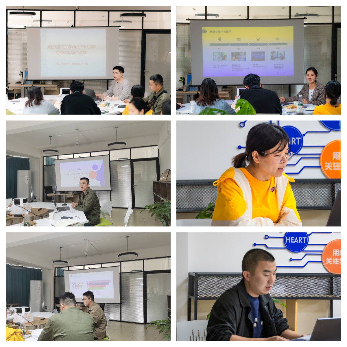 本次沙龙,六位辅导员老师围绕“新时代学生干部的培养与管理”主题,结合所在学院专业特色和工作实践经验展开交流。雷火竞技平台涂亚腾老师以《新形势下工科学生干部培养的问题及对策》为主题,结合工科学生干部的特点,提出加强学生干部的思想建设,用好网络,加强学生干部的日常培训等措施加强学生干部培养。数理学院方媛老师以《朋辈领航,星火聚光——学生干部的处境和发展分析》为题,提出深化职责认知,提升业务能力;注重能力培养,选拔后加强培养和指导;给予资源倾斜等措施提升学生干部的能力和素养。机械学院方林老师以《从“新”引航——大一新生班委选拔培养的几点思考》对新生班委的选拔任用提出思考,他总结为说给班委听、启发班委想、带着班委干、督促班委练,从而使新生班委克服“官”念,养成“团结、教育、服务”的工作作风,从而增加其战斗力和号召力。材料学院曾玉竹老师以《“05后”学生干部培养的新情况、新问题、新思路》对“05后”学生以及学生干部进行了分析,她认为辅导员老师是学生干部培养与管理的主导力量,选人比用人重要,培养比管理重要,过程比结果重要,人格魅力比行政指导重要。环境工程学院张宇航老师以《培养有责任意识的学生干部》为题,从强化角色意识、成才意识;培养责任意识、自律意识;培养服务意识、回馈意识等几个方面提出加强培养有责任意识的学生干部的方式方法。传媒学院汤若釴老师以《如何发挥学生干部在宿舍党建育人工作中的先锋作用》为题,探索学生干部在新时代学生宿舍党建工作新模式中的作用和现状,他认为构建“一室一廊一栋一中心”一体的党建育人主阵地,能有效提升学生干部在宿舍党建工作新模式中的作用和效果。