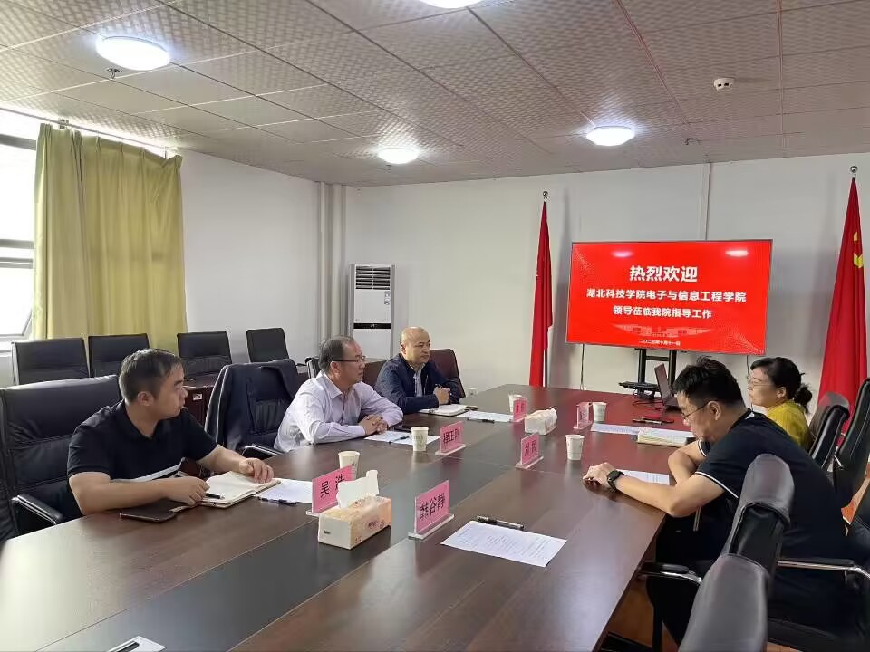 10月11日下午,湖北科技学院电子与信息工程学院院长程正则、副院长钟东一行三人来到我们调研交流。出席座谈会的有学院党委书记张红鑫、院长刘侃、副院长韩谷静。座谈会由张红鑫书记主持。