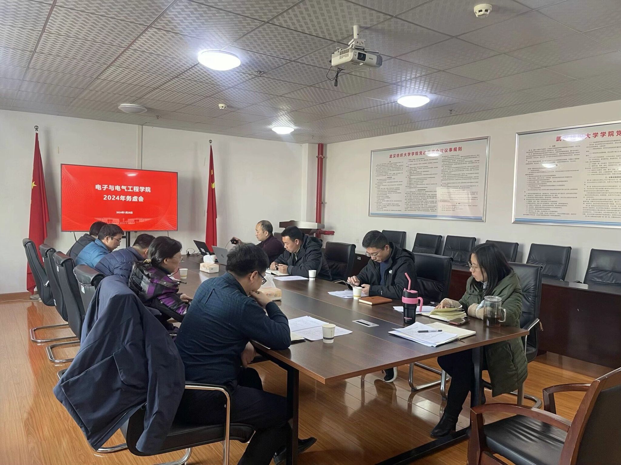 随后,各系主任汇报了2024年重点工作,全体与会人员围绕2024年的重点工作展开了深入交流研讨,提出工作规划和创新举措。同时,会议还就学院学科和专业的长期布局,新进教师团队安排,资产整体布局调整,设备采购,院庆校友工作等进行了探讨。