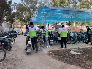 “电燃梦想”学生社区位于8栋宿舍,临近学校北门口,针对社区门口电动自行车乱停乱放、电动自行车棚卫生和摆放问题,学院学生党员、入党积极分子、党校学员根据统一安排,采用排班制度进行实践服务,并设置党员服务岗和志愿者服务岗。一方面收集社区学生遇到的问题,并将学生诉求及时反馈给学院;另一方面,针对停车高峰期,积极引导同学们规范有序的停放电动自行车,并对社区门口乱停乱放的车辆进行整治,依次有序停靠。截止目前,累计值班近百人次。