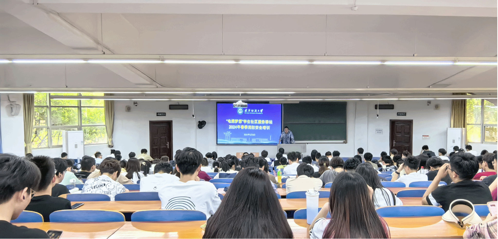 为进一步增强广大师生的消防安全意识,提高师生预防火灾、处置火灾的能力,根据学校统一安排部署,5月9日下午,2024年春季校园消防安全教育培训走进8栋“电燃梦想”一站式学生社区,学校保卫处消防科陈斌、刘诚老师为来自电气、纺织、数理、机械等学院的三百余名师生代表带来一堂精彩实用的消防安全知识暨实战演练公开课,指导学生在实地情景模拟中掌握火灾疏散逃生基本技能。