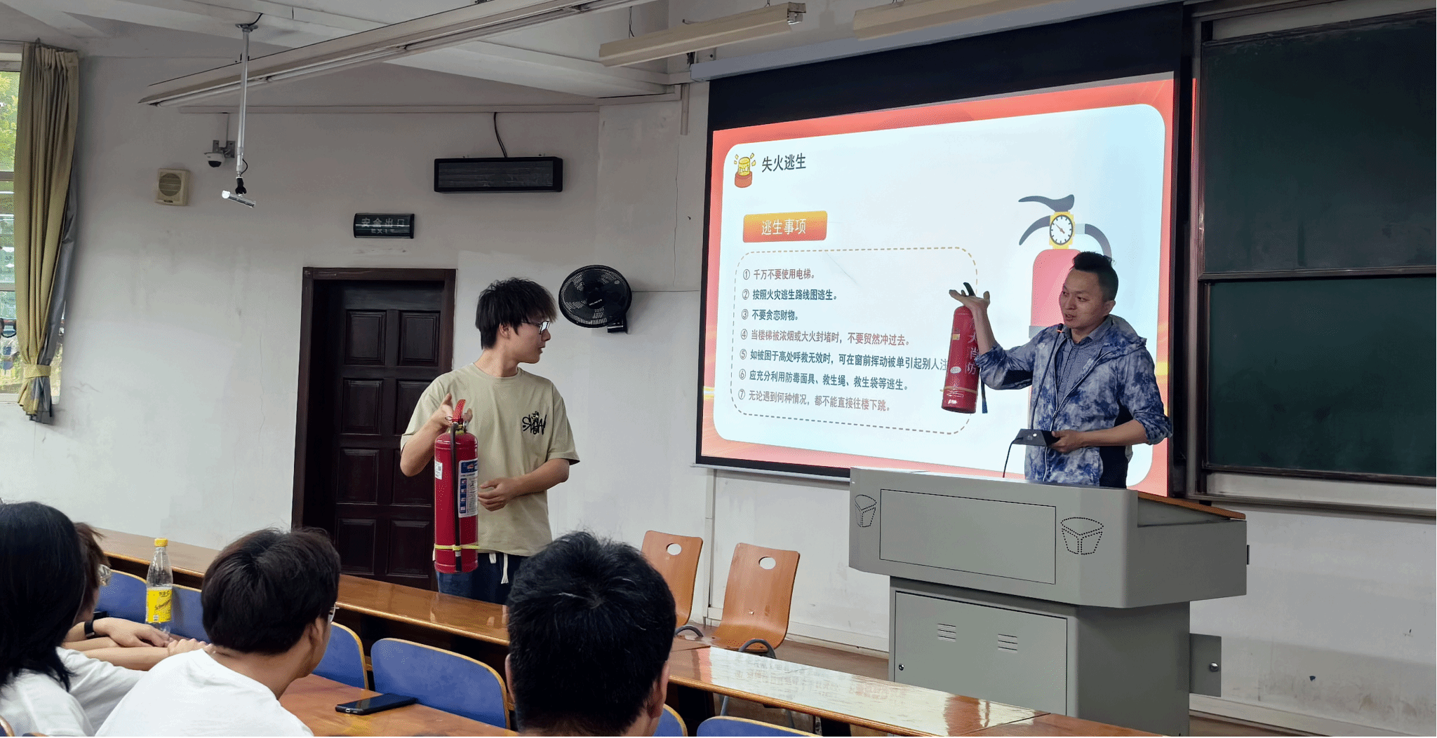 “如何辨识身边的火灾隐患?如何正确使用灭火器?如何扑救初期火灾?”讲座中,陈斌老师通过观看警示教育宣传片等方式,对近年来典型校园火灾案例进行剖析,从“高校火灾形势”“校园消防隐患”“建筑消防设施”“安全疏散逃生”“火灾扑救方法”等五个方面进行全面讲解,并实物展示了干粉灭火器等常见消防设施及其使用方法,教育引导师生在提高消防安全知识的同时提升自防自救能力。