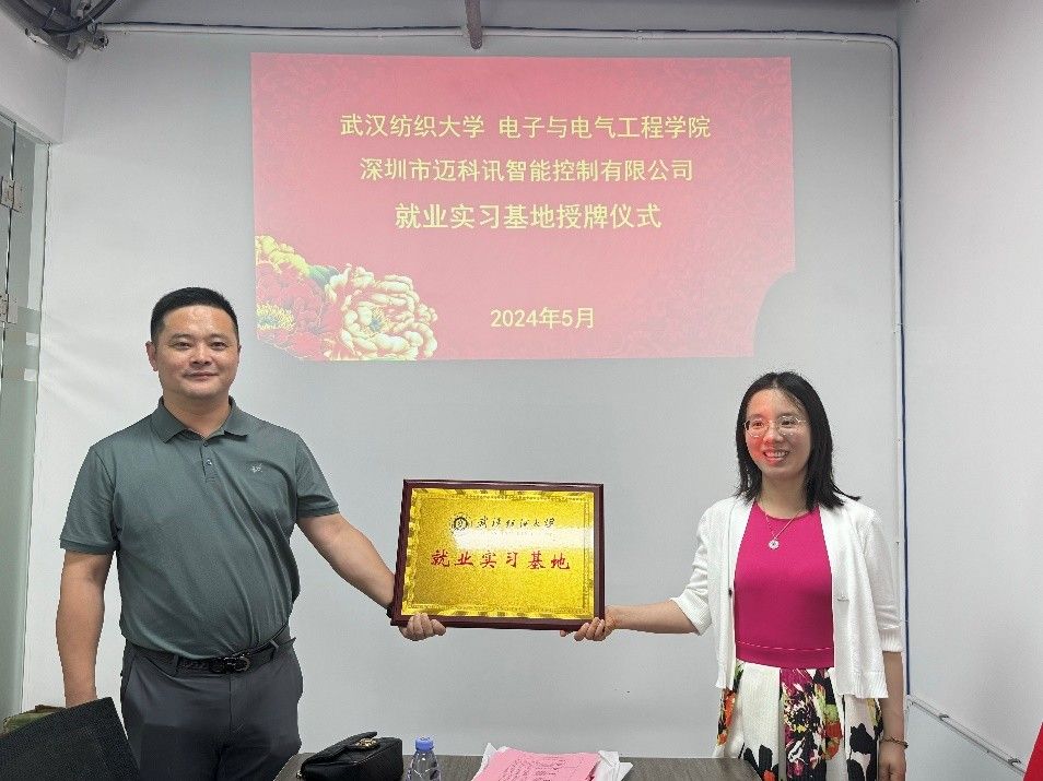 交流会结束后,韩谷静副院长一行与张炜总经理进行了深入的讨论,并举行了雷火电竞官网就业实习基地的授牌仪式。此次授牌标志着雷火电竞官网与深圳市迈科讯智能控制有限公司在校企合作方面迈出了新的步伐。
