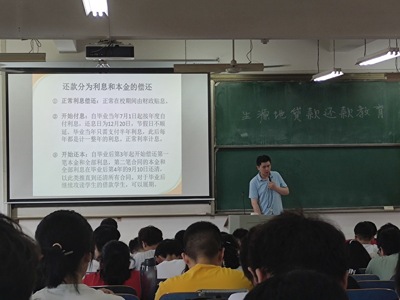为了让助学贷款学生明确贷款责任和义务,认清违约对个人信用造成的影响和危害,5月9日晚,学院组织生源地贷款学生代表集中学习了金融及诚信知识、还款流程、支付宝还款操作程序等相关内容。涂亚腾老师强调,大四毕业后将进行第一次还款,希望各位同学珍惜个人信誉,确保良好的信用记录,以诚信的态度对待生活,走向社会。会后学院还组织生源地助学贷款应届毕业生签署《还款确认书》并进行网上信息更新确认。