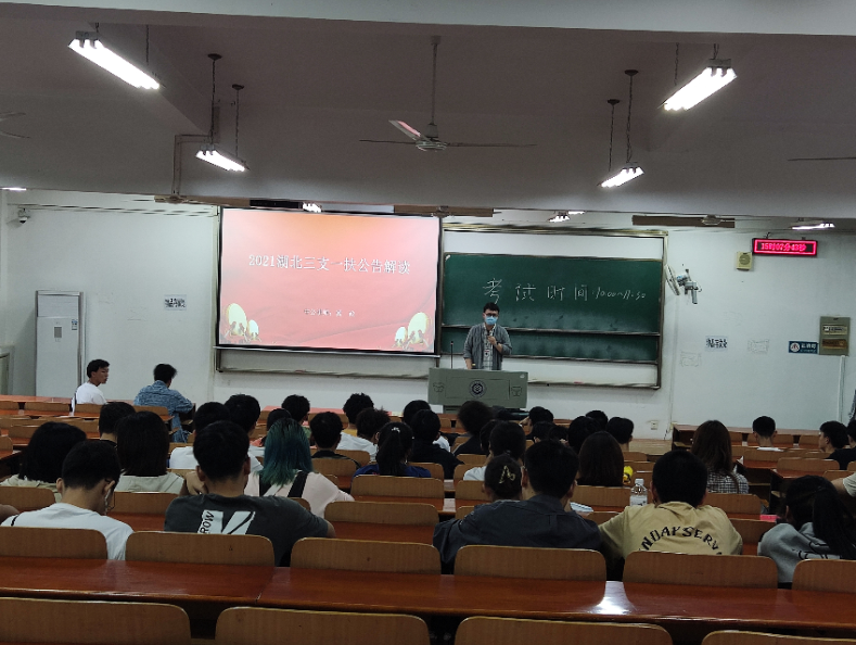 5月23日下午,雷火竞技平台在阳光校区崇志楼120教室成功举办“三支一扶”政策宣讲会,中公教育冀政老师主讲,辅导员吴昊、牟迪以及各年级学生参加了此次活动。