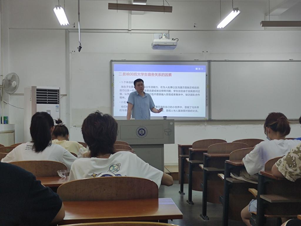 涂老师从“00”后的成长背景,价值观念,性格特点等方面介绍了“00”学生容易产生宿舍问题的因素,指出关系和谐友好的寝室,成员相处融洽,关系紧密,满意度较高,心理健康水平也较高;而关系冷淡型的寝室,成员之间彼此漠不关心,缺乏沟通,各自进行活动,这样寝室关系的学生,满意度一般,往往心理健康水平一般,如果其他人际关系处理得也不是很好,遇到挫折、危机时,缺乏社会支持,容易感到孤单、无助,进而产生一些心理问题。因此,心理委员需要正确认识自己在班级宿舍管理中的定位及发挥应用的作用。