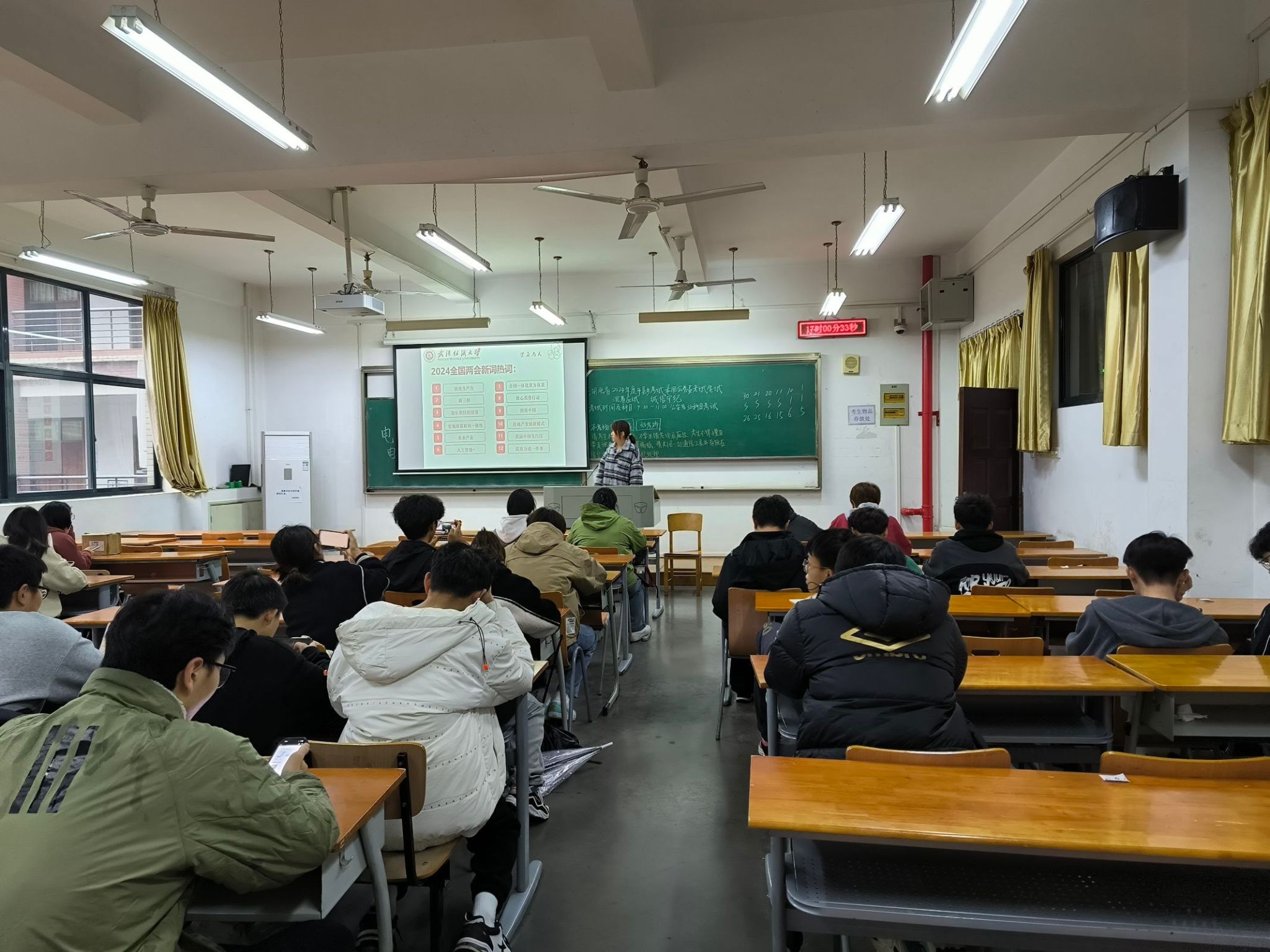 会上,各辅导员、班主任首先带领学生学习两会的主要内容。当前,祖国经济总体回升向好、现代化产业体系建设取得重要进展、科技创新实现新的突破、改革开放向纵深推进、安全发展基础巩固夯实、生态环境质量稳中改善、民生保障有力有效。回顾过去一年,多重困难挑战交织叠加,我国经济波浪式发展、曲折式前进,成绩来之不易。